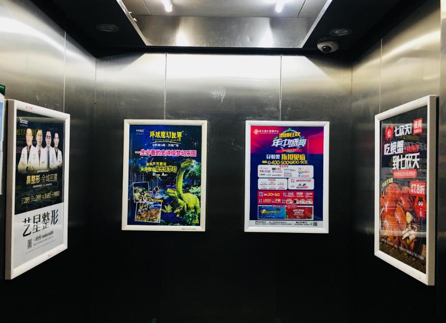 深圳電梯框架廣告是靜態廣告形式,由廣告框和海報組成,是電梯廣告中最常見的廣告形式,一般每個電梯轎廂可投放1-3塊電梯框架廣告,也有一些電梯框架廣告投放在電梯等候廳內。
