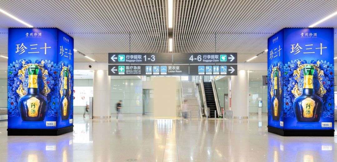 媒體位于 T1 航站樓到達層行李廳外排,燈箱自帶高光。周邊環 境寬闊、明亮,媒體環境干凈干擾少,畫面視覺沖擊力強。長沙黃花機場廣告 –??T1 航站樓到達廳外等候區燈箱廣告