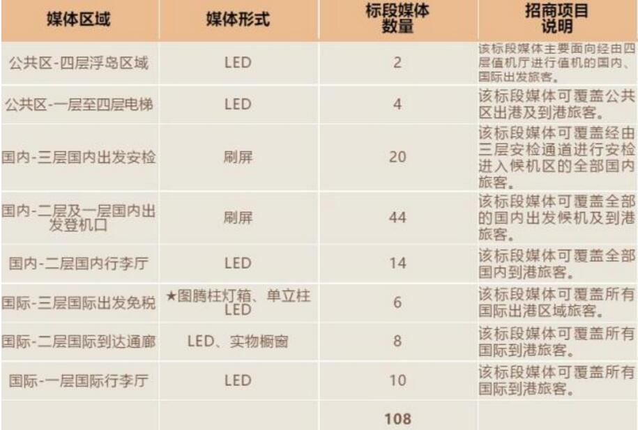 官方公布的數(shù)字媒體廣告位共計108塊,點位如下: